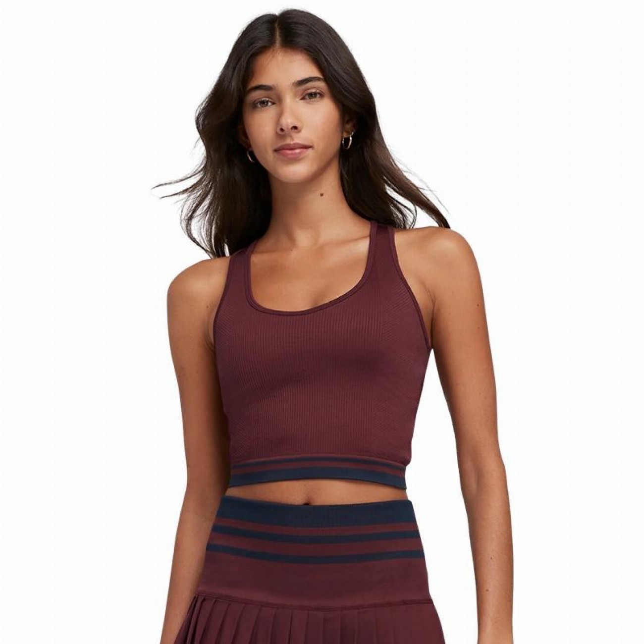 Con una vestibilità lunga fino alla vita e una fascia elastica di supporto, questo top si adatta perfettamente al tuo corpo senza scivolare o rotolare.